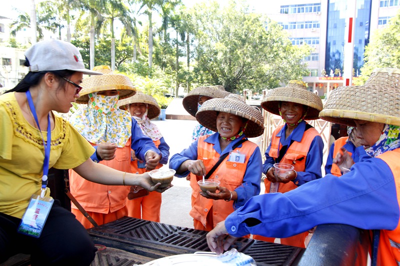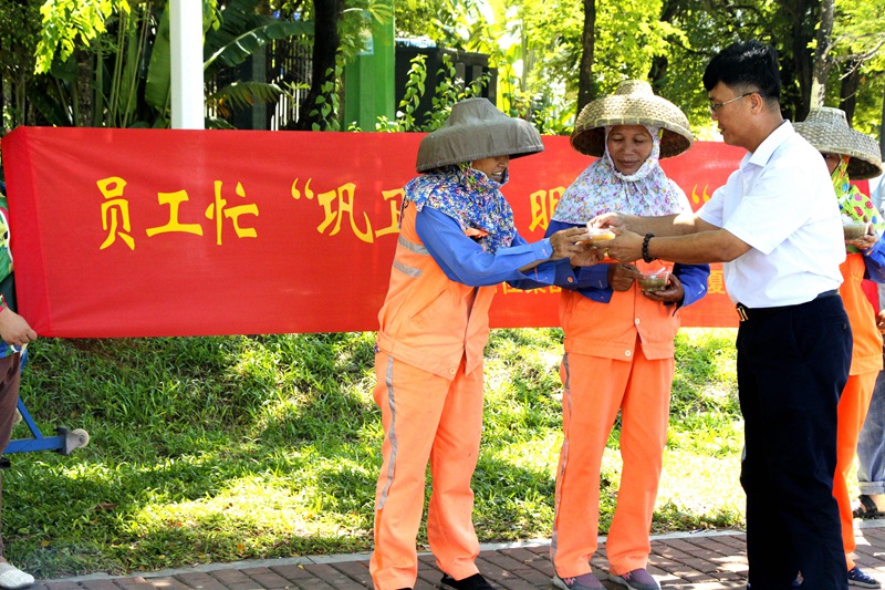 7月3日,集團(tuán)公司主席工會(huì)主席高斐斐率慰問(wèn)組一行,到鳳凰路一中路段、海虹廣場(chǎng)等地為正在高溫下作業(yè)的員工送去降溫解暑的綠豆湯,送上公司以及工會(huì)組織的關(guān)懷和問(wèn)候。