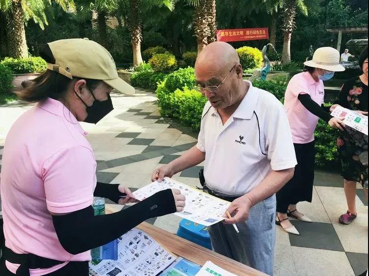 活動(dòng)伊始,工作人員向小區(qū)居民分發(fā)了垃圾分類宣傳冊(cè),