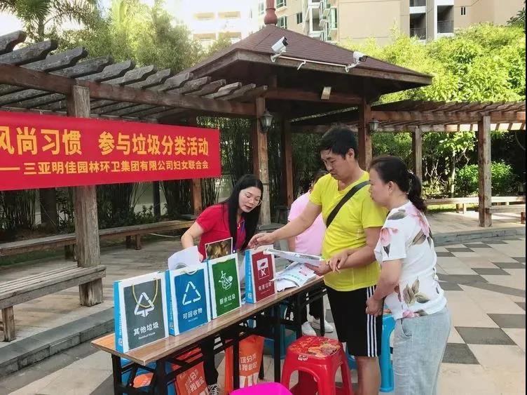 為進(jìn)一步強(qiáng)化小區(qū)居民對(duì)垃圾分類的認(rèn)識(shí),不斷提高居民愛護(hù)環(huán)境、保護(hù)環(huán)境的意識(shí),養(yǎng)成垃圾分類的好習(xí)慣,帶動(dòng)更多人參與到垃圾分類的行動(dòng)中來,助力三亞創(chuàng)建全國文明城市。11月17日9時(shí),三亞明佳集團(tuán)黨支部、工會(huì)、婦聯(lián)、共青團(tuán)聯(lián)合在南新悅城小區(qū)開展“倡導(dǎo)文明風(fēng)尚習(xí)慣 參與垃圾分類活動(dòng)”為主題的垃圾分類宣傳活動(dòng)。