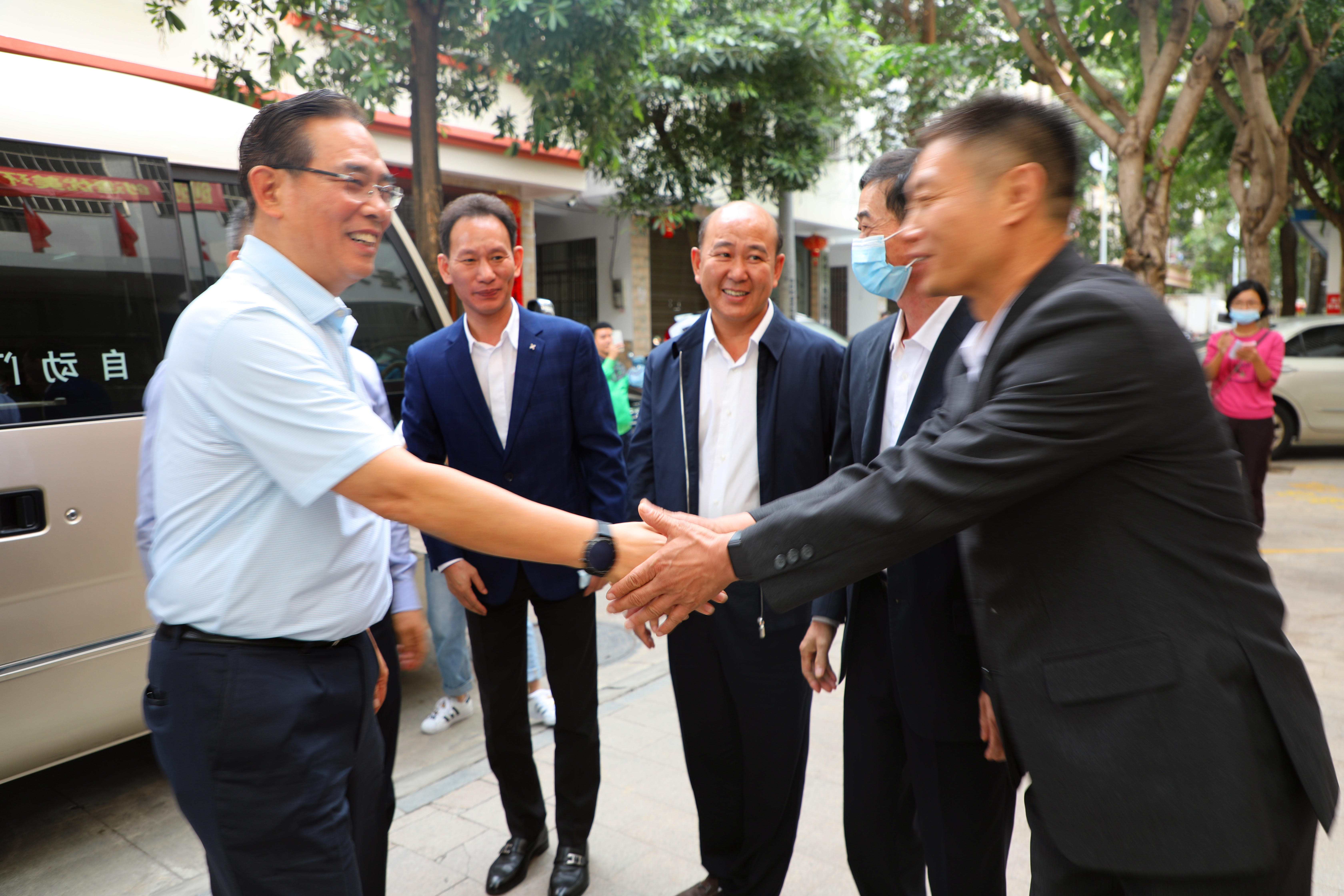 董事長(zhǎng)陳明、總裁陳云及工會(huì)主席高斐斐在集團(tuán)門前迎接蔡副主席的到來(lái)。