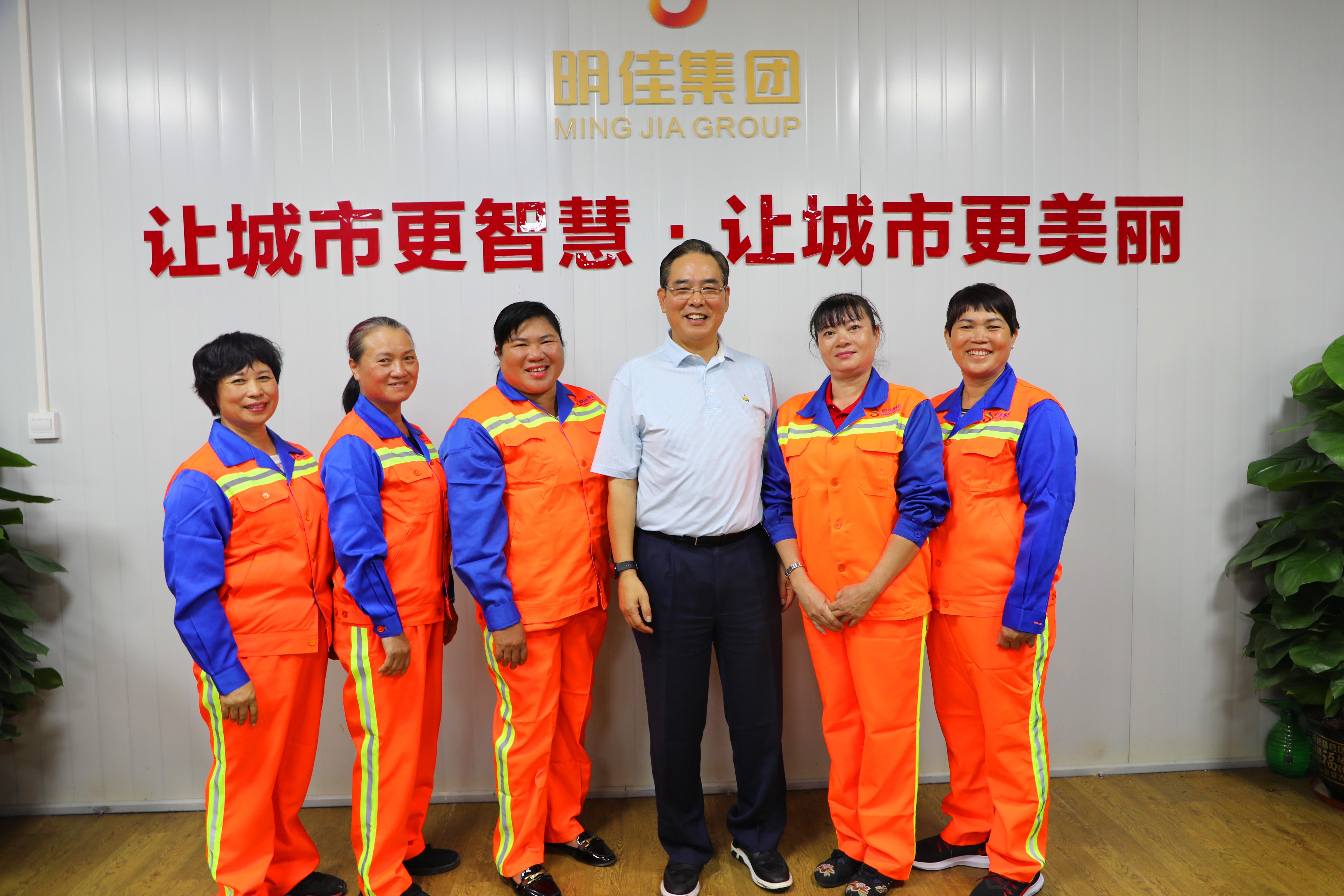 他肯定了明佳集團(tuán)工會(huì)取得的成績(jī),并親切慰問了現(xiàn)場(chǎng)的環(huán)衛(wèi)工人,與他們一一握手,并合影留念。