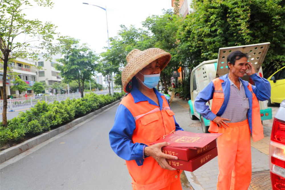 2019年中秋佳節(jié)來臨之際,為了使明佳集團公司全體員工感受到“大家庭”的溫暖,明佳集團黨支部、明佳集團工會聯(lián)合組織開展了“中秋佳節(jié)、情暖職工”活動。自9月5日起,明佳集團工會主席高斐斐、明佳集團黨支部宣傳委員陳冬梅和各區(qū)域領導分別在集團公司、各環(huán)衛(wèi)隊為職工送上中秋月餅和涼茶,并致以節(jié)日的問候和衷心的祝福。